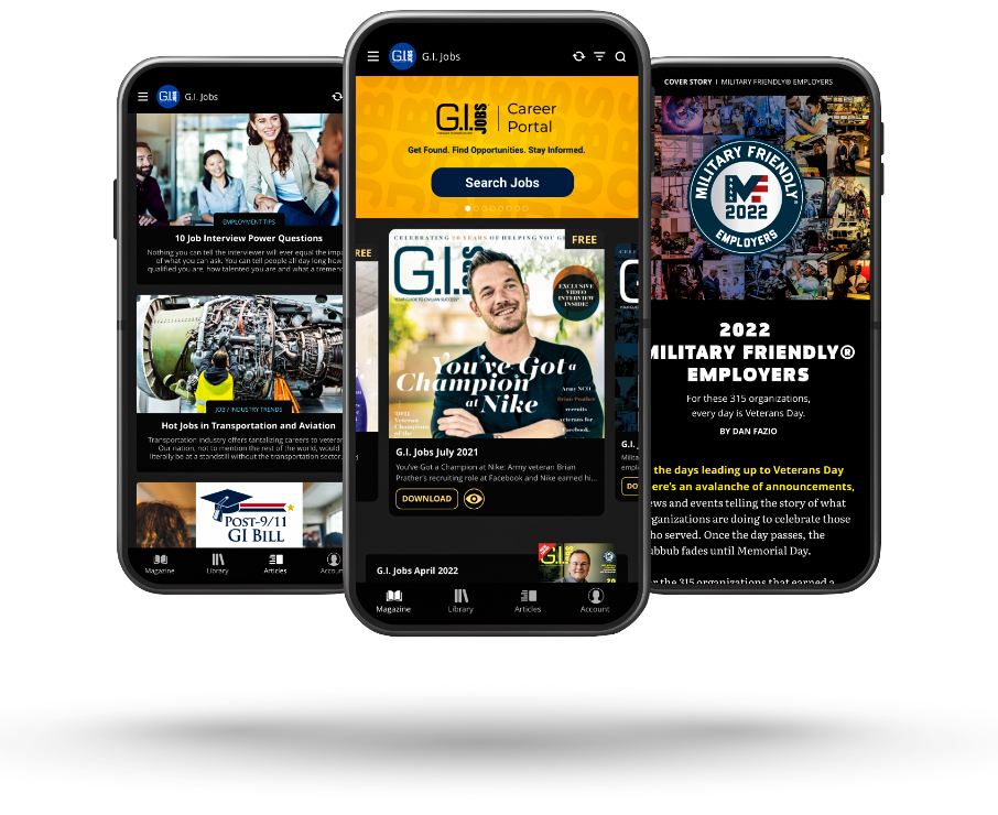 Explore your post-military options with our digital and print publications. G.I. Jobs magazine keeps you in the loop with the latest career, education and franchise information you need to map out your new civilian life.