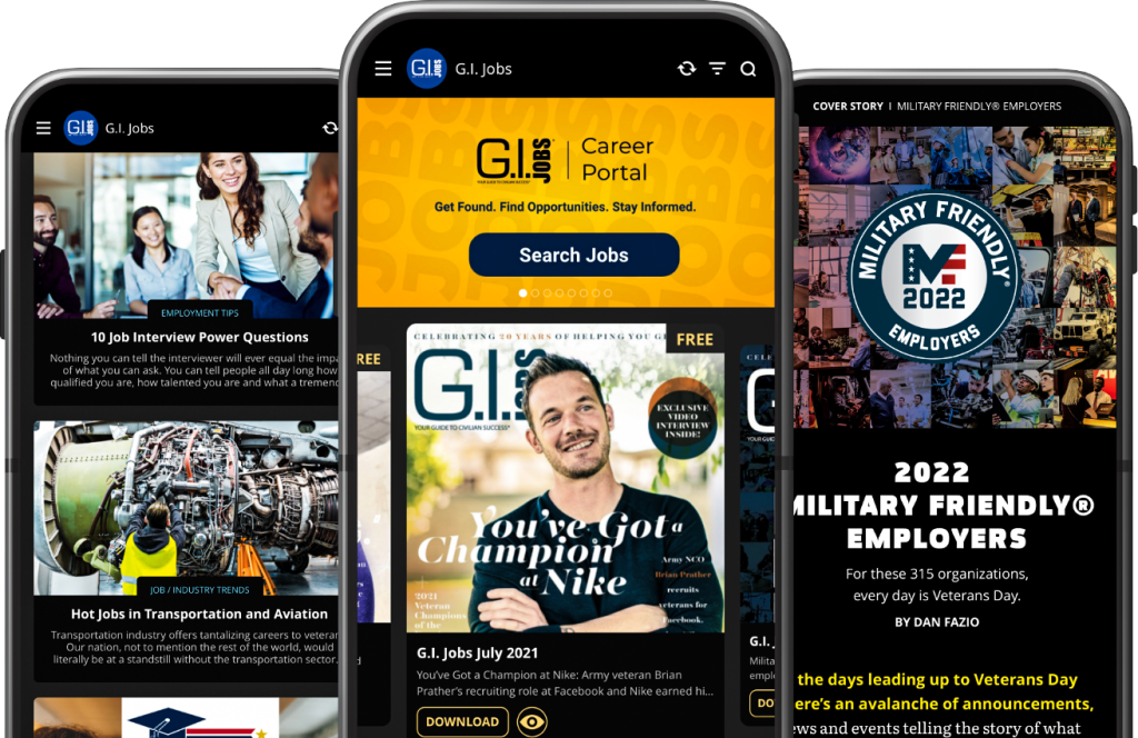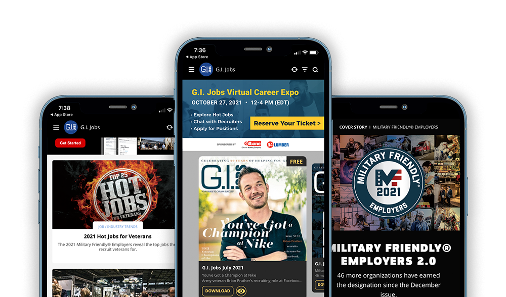 Explore your post-military options with our digital and print publications. G.I. Jobs magazine keeps you in the loop with the latest career, education and franchise information you need to map out your new civilian life.