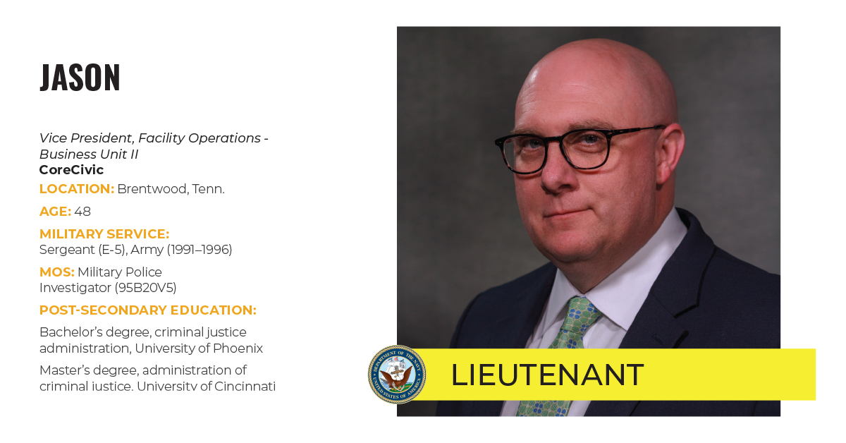 I have always had a passion for law enforcement and the criminal justice field. I found the transition to corrections was very easy—the paramilitary organization and structure was easy to navigate and I could see a career path where my military training, experience and leadership skills provided value.